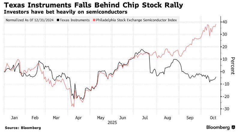 德州仪器的股价自今年以来,已大幅落后于更广泛的美股半导体板块涨势,公布业绩之后,在美股盘后交易中一度大幅下跌超8%。德州仪器股价今年以来跌近2%,相比之下,有着“全球芯片股风向标”称号的费城半导体指数同期涨幅高达37%,大幅跑赢标普500指数以及纳斯达克100指数。德州仪器这份最新业绩报告,可谓未能给芯片巨头财报季开个好头(在德州仪器公布业绩之后,AMD、英特尔以及英伟达等芯片巨头将接连公布业绩),业绩公布之后美股半导体板块的成分股普遍走弱。