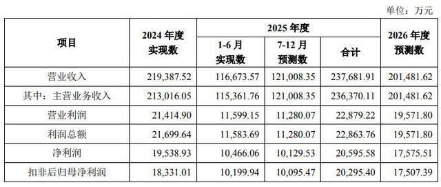 2025年、2026年,预计公司扣非后归母净利润分别为2.03亿元、1.75亿元,预计2025年扣非后归母净利润较2024年同比增长10.72%,预计2026年扣非后归母净利润较2025年减少13.74%。