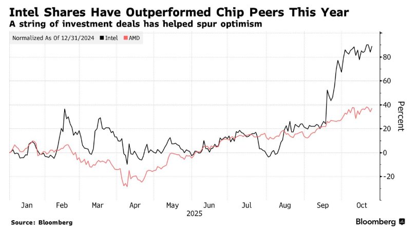 投资者们无疑对这些交易报以掌声,推动英特尔股价今年以来大幅上涨超90%,大幅强于英伟达、AMD以及台积电。这家老牌芯片巨头也一举从费城半导体指数中表现最差的芯片成分股之一,跃升为表现最佳者之一。