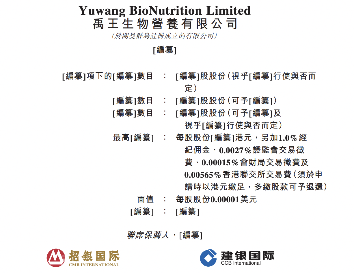 10月20日,禹王生物营养有限公司(以下简称:禹王生物)向港交所主板提交上市申请书,招银国际、建银国际为其联席保荐人。