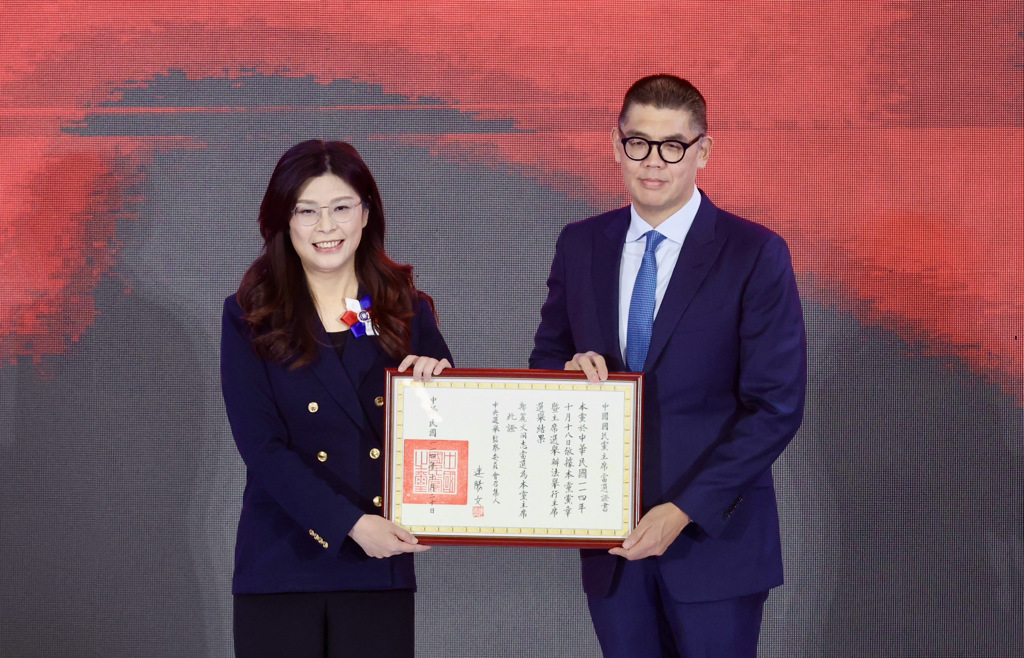 国民党第22届第1次“全台代表大会”1日于台北成功高中举行,中央选举监察委员会召集人连胜文代表致送新任主席郑丽文当选证书,同时进行印信交接仪式。而在当天晚间,连胜文也在脸书发文,直呼“已经对得起这个党”。