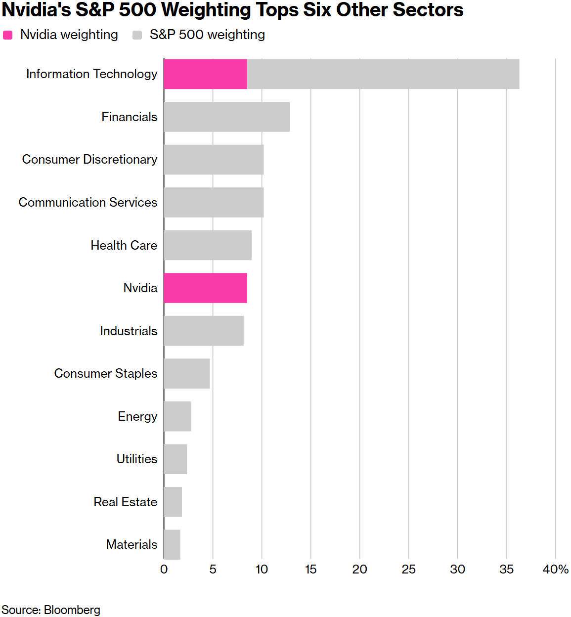 ▲英伟达在标普500指数中的权重超过六个行业板块