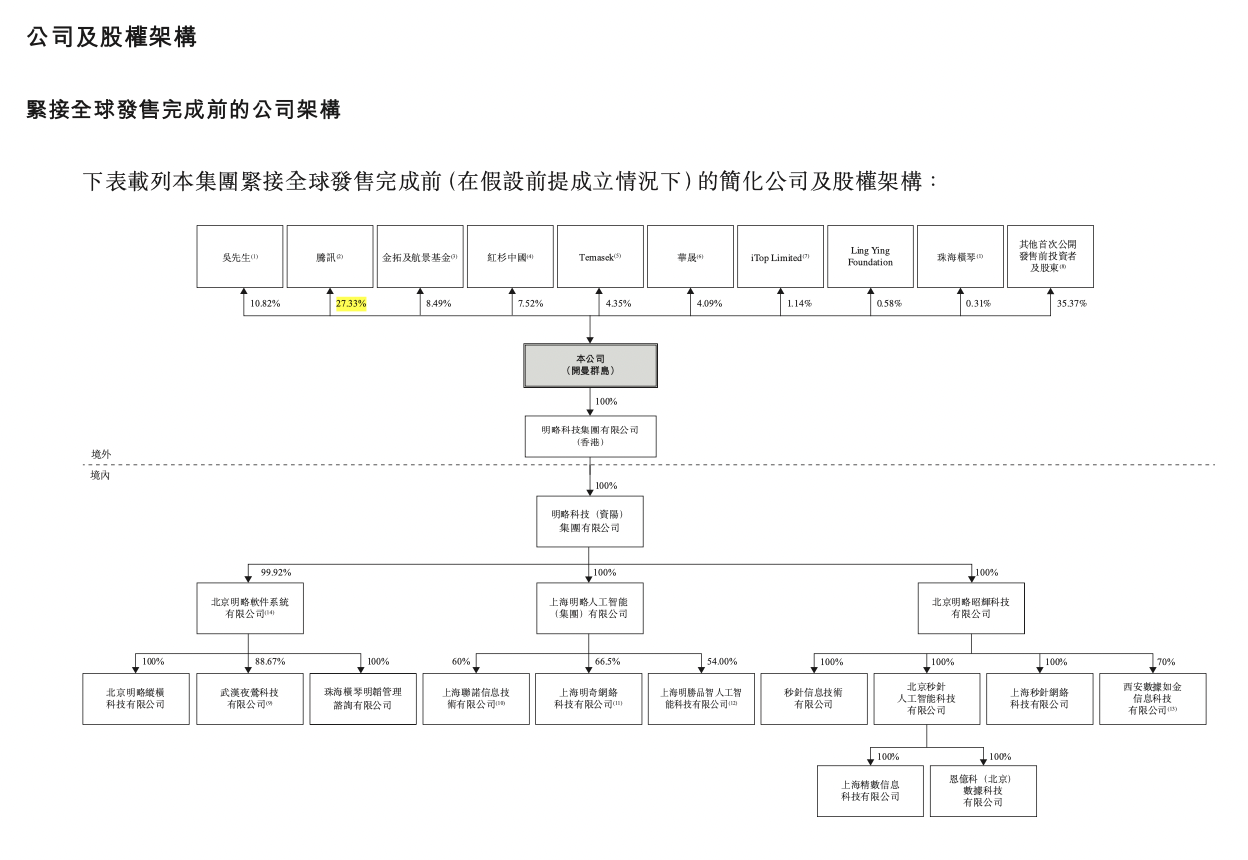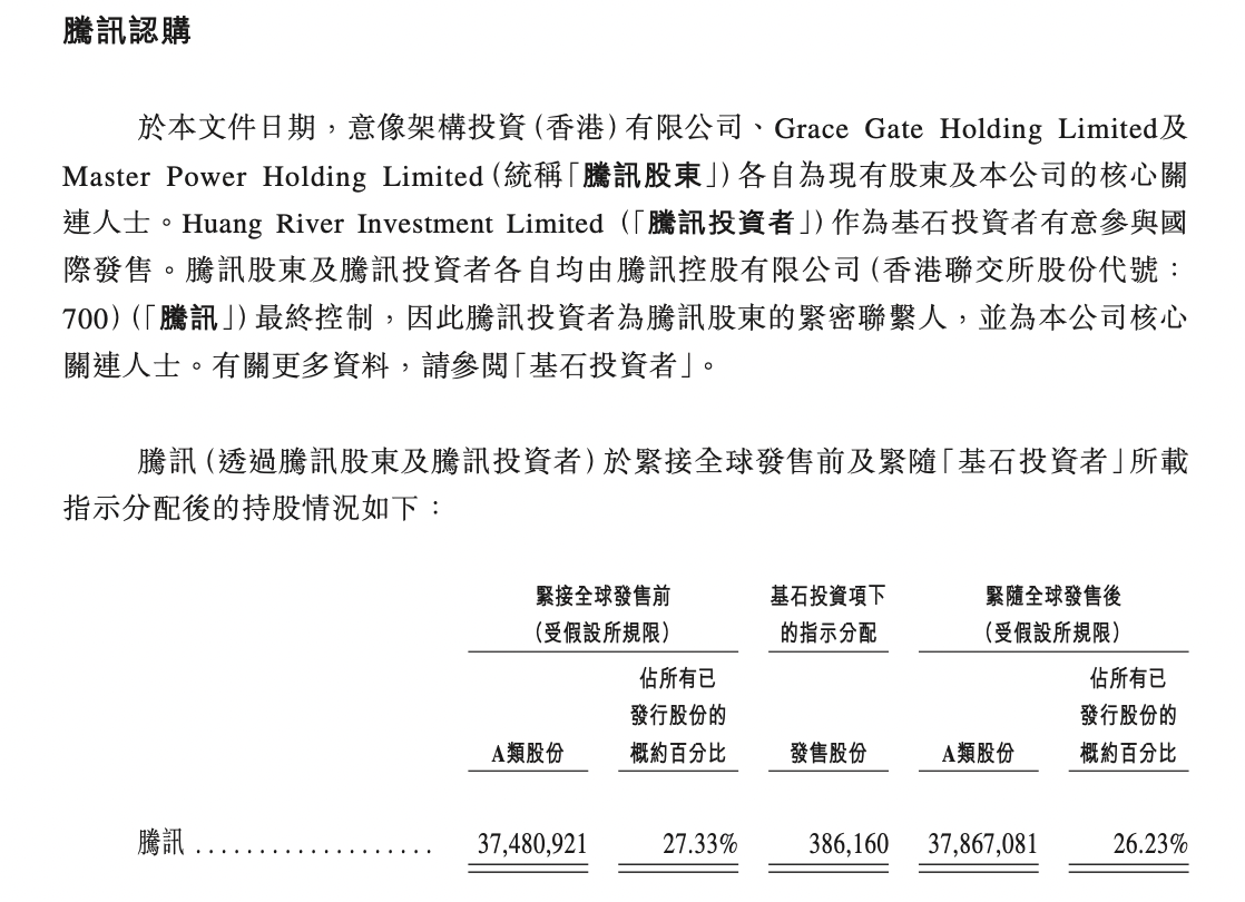 值得一提的是,腾讯既是大股东,又是基石投资人。腾讯作为明略科技持股27.33%的最大机构股东,有意作为基石投资者进行认购38.62万股,认购金额为5445万港元。