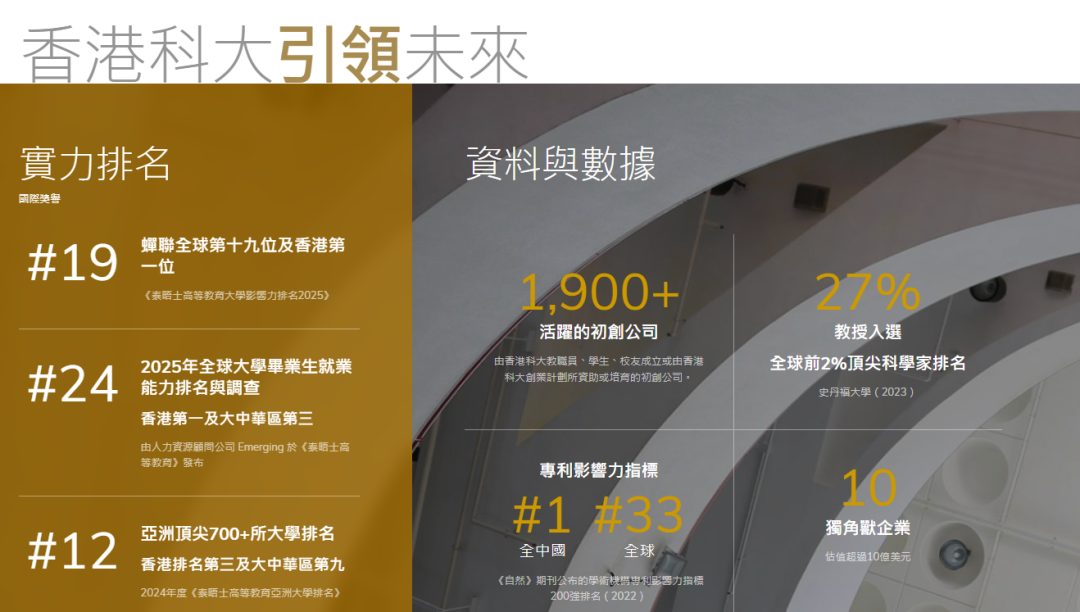 1989年,高瞻远瞩的香港领袖倡议创办一所研究型大学,以支持香港未来发展 。香港科技大学于1991年应运而生,是香港第一所研究型大学。至今已培育逾十万精英。科大在最新的QS2026排名中,上升3位至全球第44位,彰显科大以学术卓越为核心、以开创性研究为驱动、以国际化教学为特色的发展理念。