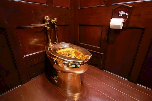 2019年两马桶其中之一在英国布莱尼姆宫展出时,5名劫匪驾车撞开大门,用大锤破窗而入,在短短5分钟内拆解并偷走了它,现场因水管破裂 "水漫金山",增加了调查难度。