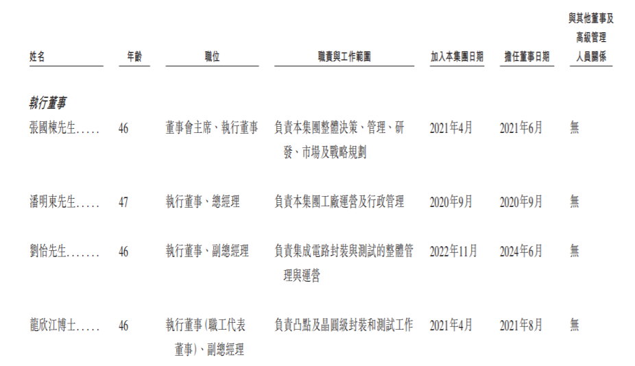 具体来看,张国栋为芯德半导体执行董事、董事会主席,潘明东为执行董事、总经理,刘怡为执行董事、副总经理。