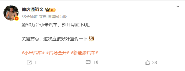 按照相关博主最新说法,小米汽车第50万台整车预计于本月底正式下线。