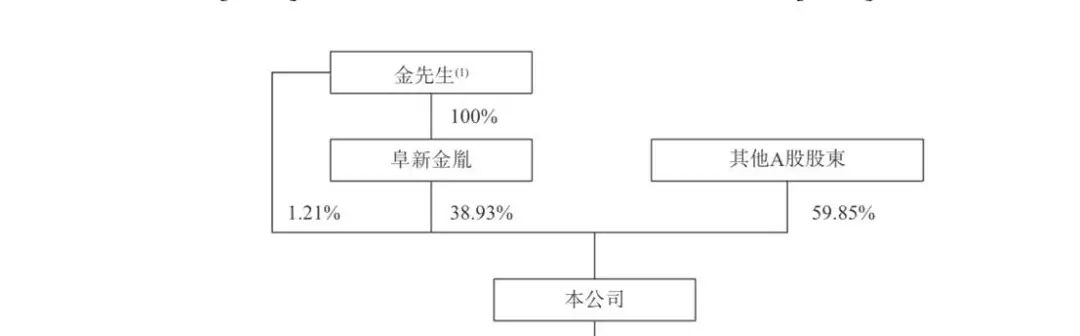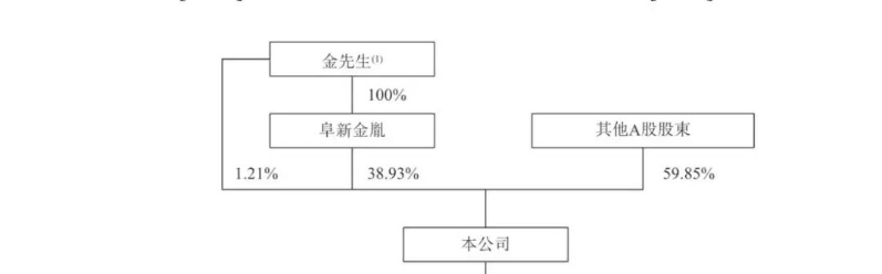 截止递表港交所,阜新金胤持有大金重工38.93%的股权,为其控股股东,阜新金胤由金鑫100%持有。同时,金鑫还直接持有大金重工1.21%的股权。因此,金鑫为大金重工实控人,控股比例40.15%。