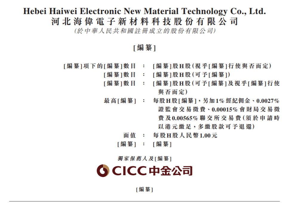 11月3日,港交所官网显示,河北海伟电子新材料科技股份有限公司(以下简称“海伟电子”)通过港交所聆讯,独家保荐人为中金公司。