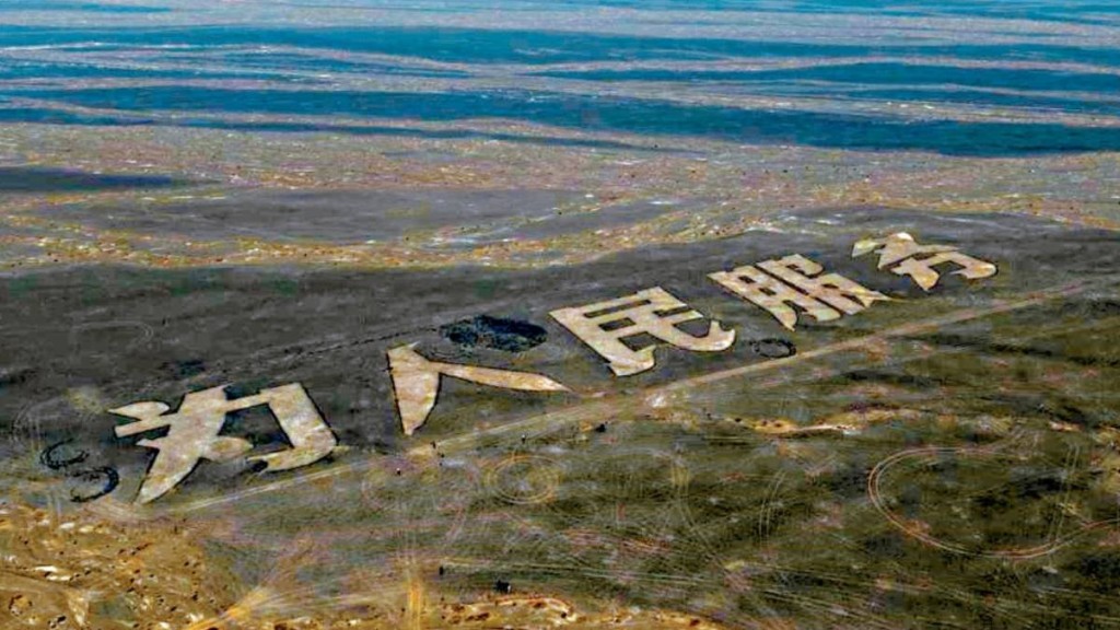这5处巨幅飞行地标是解放军第八航空学校官兵于上世纪60年代在戈壁滩上刻画而成,用于机师训练时导航参照,对保障飞行安全起到重要作用。今年9月,“为人民服务”地标遭越野车辆等人为破坏,引发广泛关注。