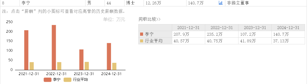 据东方财富网数据,李宁2024年从华大基因所获薪酬为140.7万元,相较上年薪酬107.2万元涨薪31.25%。