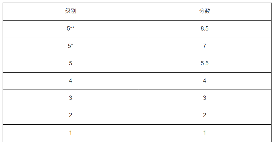 计分方法:最佳5科,第6科(Level 3或以上)额外加分