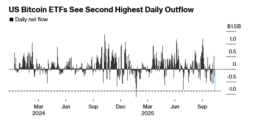 与此同时,在美股市场的那些投资于比特币的交易型基金们(即比特币ETF)在周四出现大约8.7亿美元的净流出规模,为自其2024年1月初面世以来第二大的单日赎回规模。