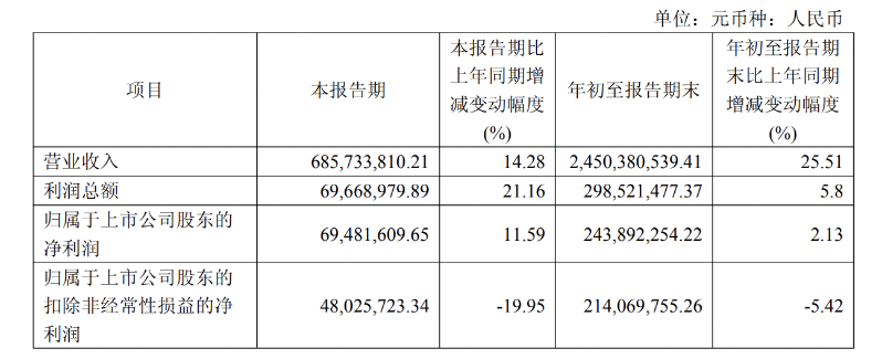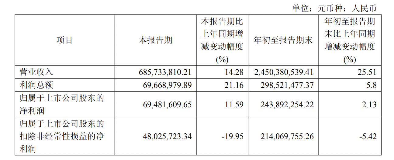 2025年三季报显示,1-9月,丸美生物营业收入24.5亿元,同比增长25.51%;归母净利润2.44亿元,同比增长2.13%。其中,第三季度,公司营业收入6.86亿元,同比增长14.28%;归母净利润6948.16万元,同比增长11.59%。
