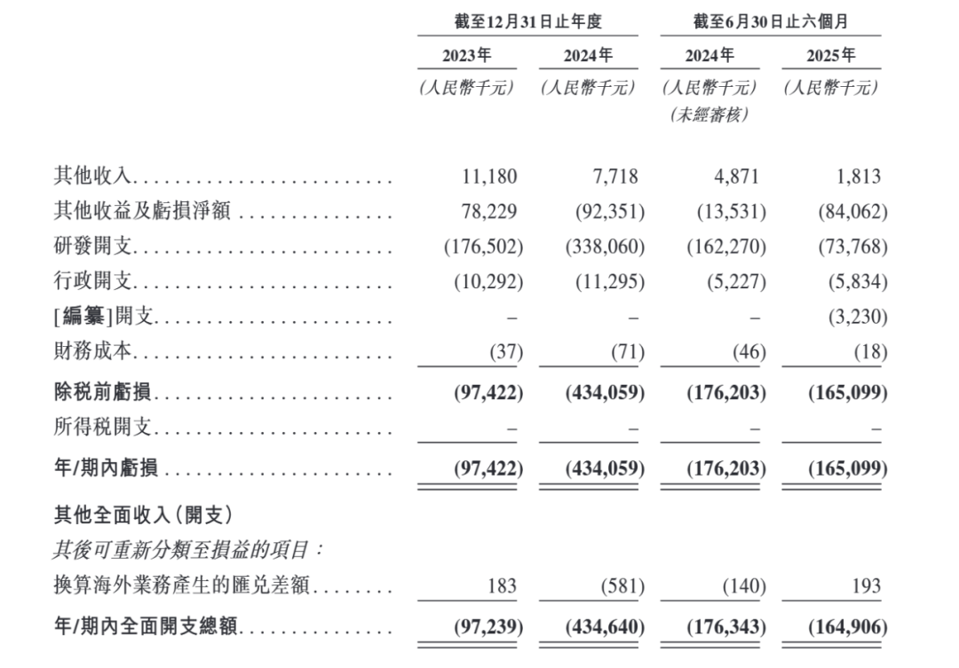 因暂无产品商业化,新元素药业也因此尚未产生任何销售收入。同时,因为高额的研发开支,2023年、2024年及2025年上半年(以下称“报告期”),新元素药业持续处于亏损状态,亏损金额分别为9742.2万元、4.34亿元及1.65亿元,两年半合计亏损约6.96亿元。