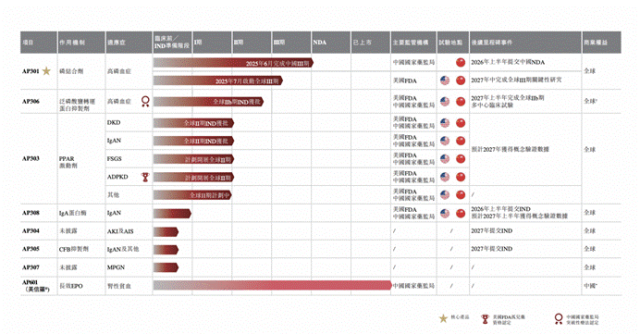 随后,礼邦医药通过收购进一步扩充产品组合,包括AP306(一款用于治疗高磷血症的潜在FIC泛磷酸盐转运蛋白抑制)、美信罗®(一款已商业化的长效促红素,用于治疗慢性肾脏病相关贫血)以及一款IgA蛋白酶。
