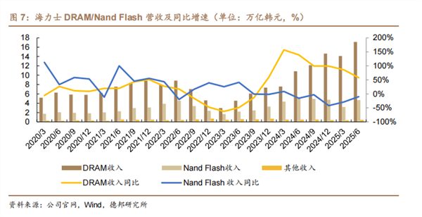 具体来看,AI服务器对存储芯片的需求呈现“量价齐升”的特点。在数量上,单台AI服务器的DRAM用量约为传统服务器的8倍,NAND Flash用量也达到传统服务器的3倍。更重要的是质的飞跃。AI模型参数高达万亿级别,训练时需要海量数据并行处理,传统内存的数据传输速度已成为制约算力释放的瓶颈,即“内存墙”问题。为此而生的高带宽内存(HBM)通过将多个DRAM芯片垂直堆叠,提供了数倍于传统内存的传输速度,成为英伟达等AI芯片巨头的标配。