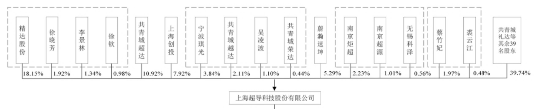 在股权结构上,目前上海超导呈现极度分散状态。截至2025年6月底,上海超导共有55家股东,第一大股东精达股份及一致行动人合计持股22.38%,第二大股东共青城超达(董事长马韬合伙企业)持股10.92%,其余股东持股均未超过10%。