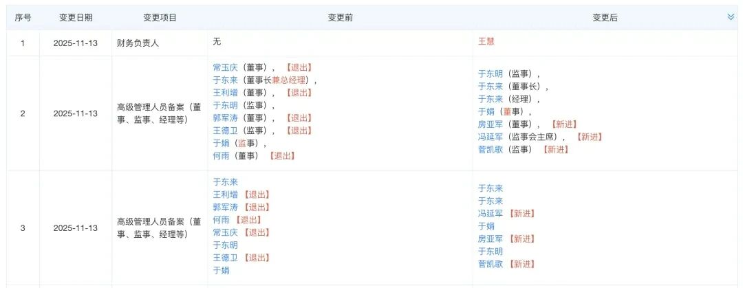 此次调整还涉及多位核心高管,常玉庆、王利增、郭军涛、王德卫、何雨五位董事退出,新增房亚军为董事,冯延军任监事会主席,王慧任财务负责人,菅凯歌任监事。