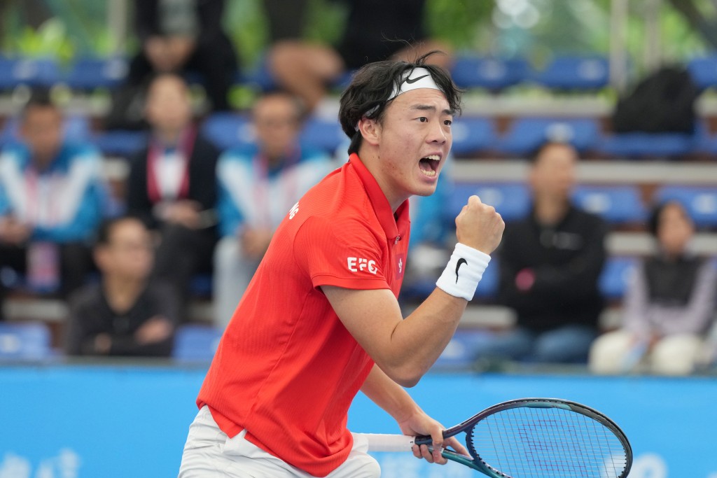 13:03 香港网球一哥黄泽林于男单4强对浙江的吴易昺,首盘双方互破两次发球局打成6:6,决胜局黄泽林胜8:6,以7:6(8:6)先赢一盘。