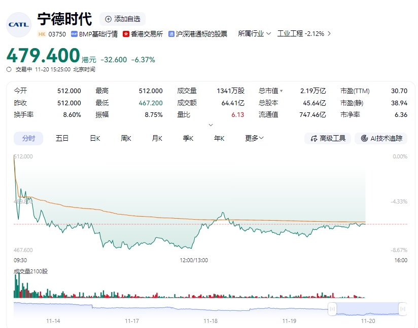 摩通早前则建议买入宁德时代A股(300750)及沽出宁德时代H股,主因禁售期结束后,可能扭转H股相对于A股存在溢价的情况,将宁德时代H股目标价由600港元下调至575港元,评级“中性”。