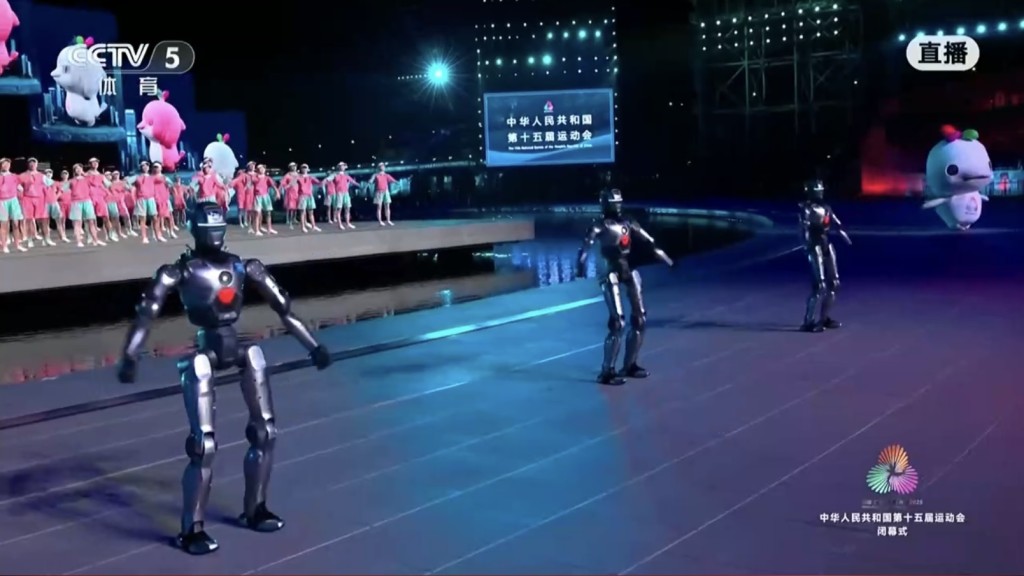 【20:15】喜洋洋、乐融融和机械人一起做广播体操。