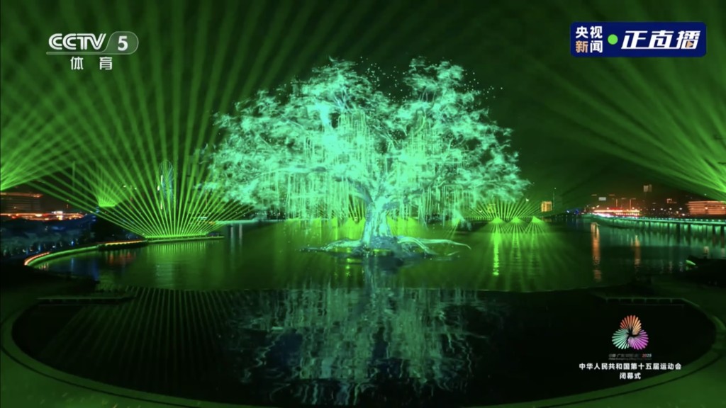 十五运会闭幕式总导演沈晨透露:“闭幕式最大的亮点,它形成了海天一色的自然景观,我们整个舞台是一张纸。在文体展演当中,它在神奇的视觉(效果)当中,这张纸缓缓破水而出的时候,是把我们深圳也好,把我们大湾区也好,把我们中国的灿烂的文化绘就在上面。”