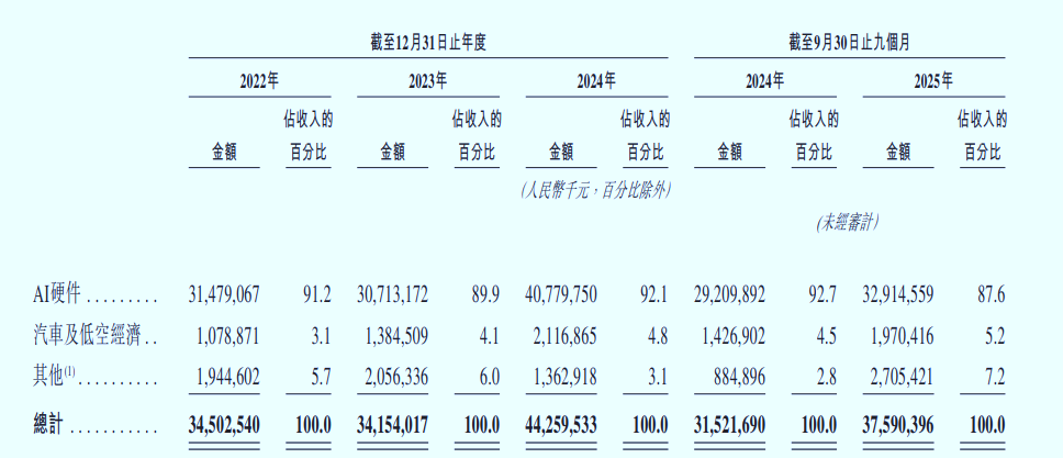 根据招股书,领益智造汽车及低空经济板块业务收入从2022年的约10亿元增长至2025年前三季度的20亿元,正处在快速增长期,但对整体业务的贡献度依然只有5%。