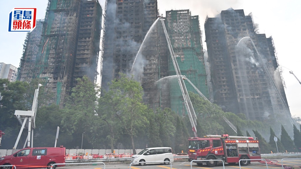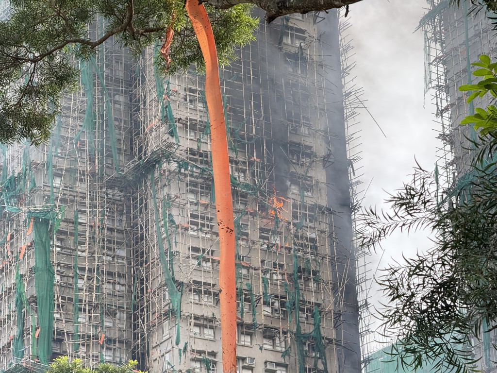 大埔宏福苑发生五级大火。昨日(26日)下午约2时52分发生火警,现场火势猛烈,入夜后仍未有未有减弱之势。至今日(27日)早上9时许,现场火情已控制,大部分火势已被扑灭,但仍浓烟不断,不时出现爆破声,有反扑迹象。现时目测只余约6至7户仍有火势,消防派出四条喷水喉灭火降温。