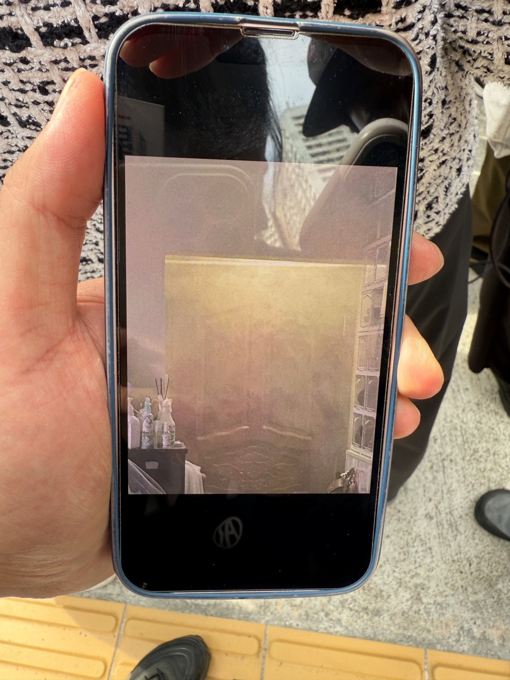 ▲钟先生展示单位现场浓烟照片。相片由受访者提供