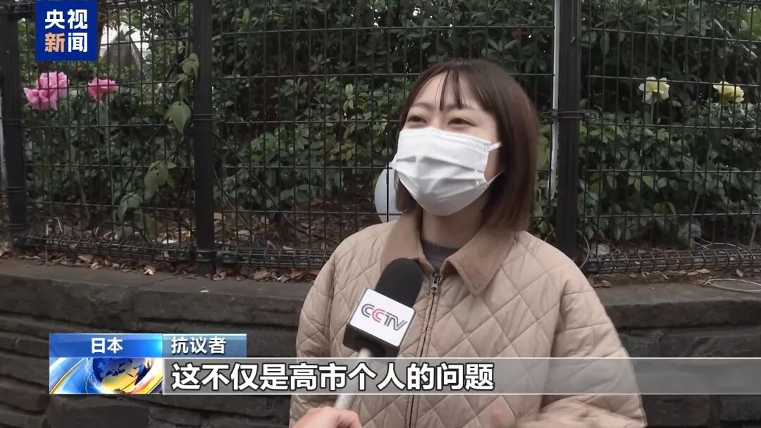 抗议民众:高市想要彻底颠覆日本战后的方向,把日本重新带回战前的帝国主义,并且作为首相推动这样的政治。我了解日本过去对中国和亚洲发动的侵略战争,以及殖民统治的历史。这样的历史绝对不可以重演,经历过广岛和长崎之后,日本现在却要抛弃“无核三原则”,再次转向拥有核武器的政策,这种事情绝对不能发生。