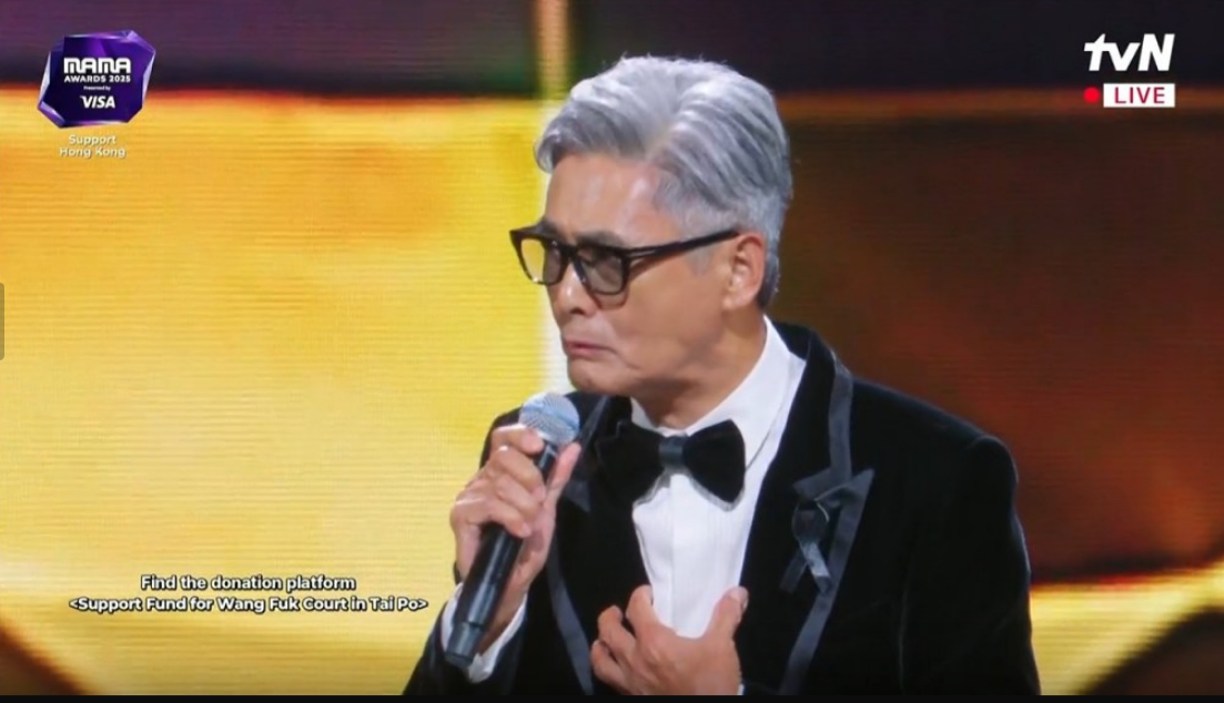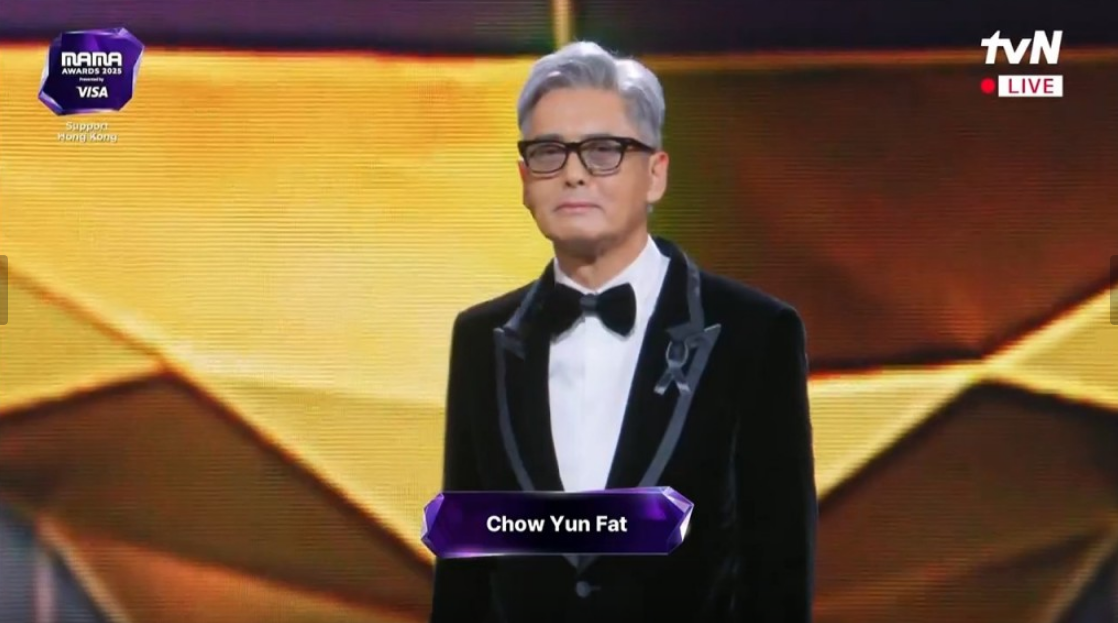 相隔7年再来香港的韩国年度音乐盛事《2025 MAMA Awards》(MAMA),首次选址香港启德体育园启德主场馆举行,香港地区除HBO Max会进行在线直播外,TVB的myTV SUPER频道505 tvN Asia亦会同时全程直播。由于香港大埔宏福苑周三(26日)发生严重五级火,导致逾百人伤亡,大会日前布修改颁奖礼流程,以“支持香港”为活动主题,28日由担任司仪的朴宝剑带领全场观众进行默哀,悼念在火灾上的罹难者。昨晚MAMA开场时,曾预告担任压轴颁奖嘉实的周润发将会现身,韩星申升勋颁发年度大奖“年度专辑(ALBUM OF THE YEAR)”后,周润发压轴现身颁发“年度艺人(ARTIST OF THE YEAR)”,但他请全场观众起立,向大埔遇难者默哀。