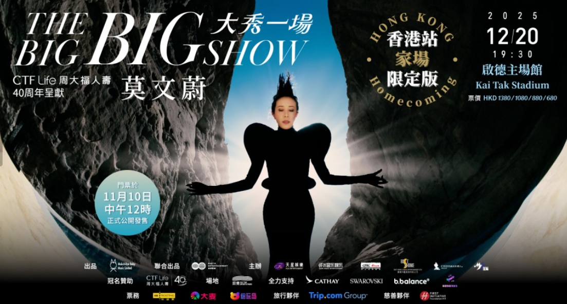 ▲莫文蔚原定于2025年12月20日举行的“莫文蔚 The BIG BIG SHOW 大秀一场 - 香港站‘家场’限定版”。