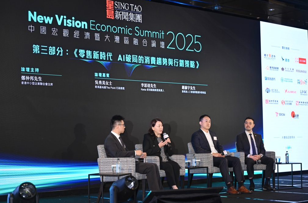 随着港人北上消费、内地品牌加速进驻香港,香港零售业面临性价比与服务体验的双重挑战,香港中小型企业联合会主席郑仲邦、新地The Point行政总裁吴秀美、Keeta香港连锁业务负责人李思达及数码港人工智能与数据科学总监严涤宇论坛上,共同探讨如何破局,认为香港品牌需要升级转型,借鉴内地经验及科技手段提升业务竞争力。