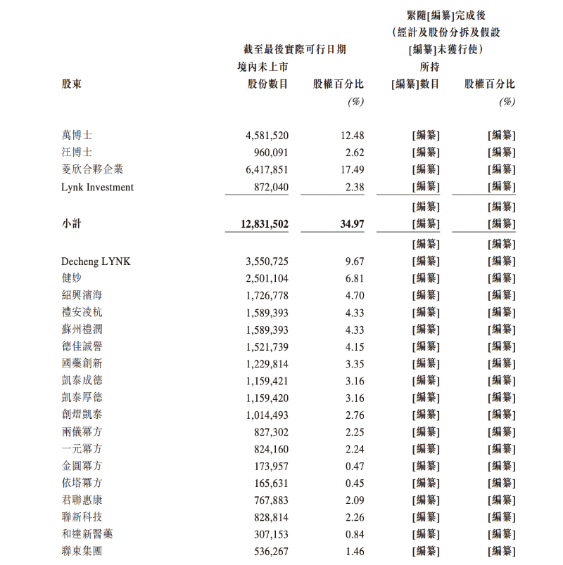 另外,德诚美元基金旗下Decheng LYNK 持股9.67%,君联资本旗下君联惠康及健妙分别持股2.09%、6.81%,凯泰资本旗下凯泰成德、凯泰厚德及创熠凯泰分别持股3.16%、3.16%、2.76%,国药创新持股3.35%,泰鲲投资持股2.05%,联东集团持股1.46%,浙商基金持股1.38%等。
