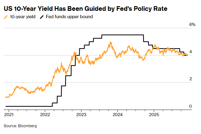 该行预计,10年期美国国债收益率在2025年下降约50个基点至4.08%左右后,将在明年年底前攀升至4.35%。这一预测使摩根大通成为较为悲观的市场展望者之一。接受一项调查的经济学家和策略师预测中值显示,10年期国债收益率将在2026年底达到4.06%。