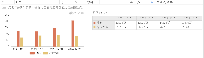 据东方财富网数据,宝新能源总经理叶林2024年所获薪酬为205.6万元,相较上年薪酬143.5万元涨薪43.28%。