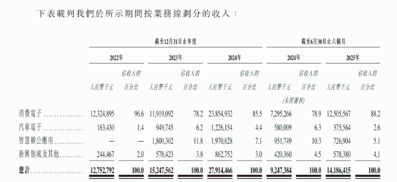 2022年至2024年,立景创新收入的复合年增长率达47.9%,净利润复合年增长率为23.5%。其中消费电子业务收入的复合年增长率达39.1%,汽车电子业务收入的复合年增长率激增至158.5%。