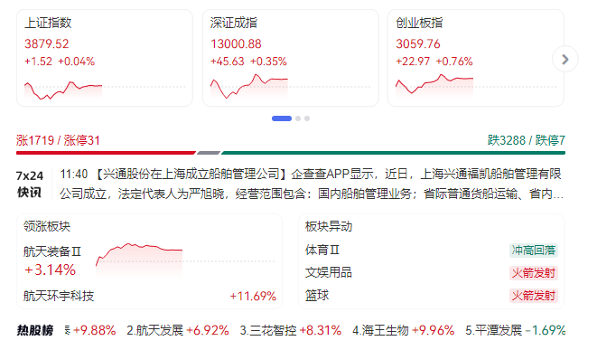 12月4日消息,市场早盘下探后回升,尾盘再度回落,创指盘中一度涨逾1%。截至午间收盘,沪指报3879.52,涨0.04%;深成指报13000.88点,涨0.35%;创指报3059.76点,涨0.76%。