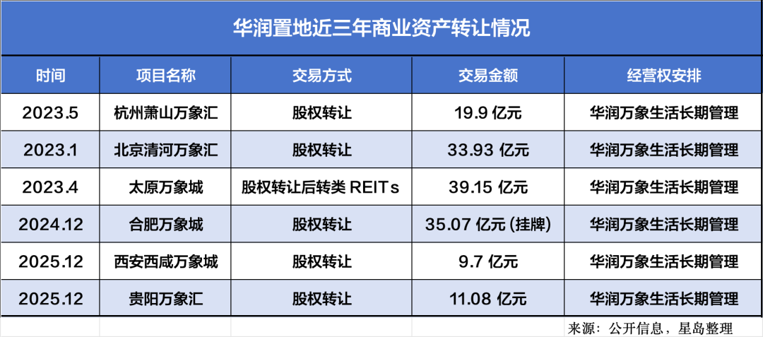 算上即将转让的西安、贵阳两个项目,华润置地近几年通过出让资产产权但绑定经营权的方式,已回笼资金逾百亿。