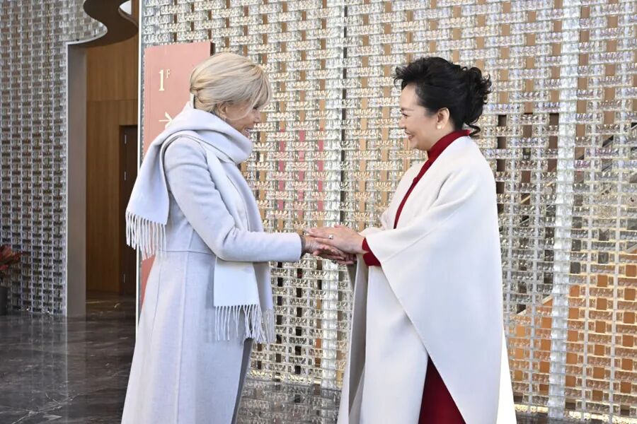 据新华社消息,12月4日上午,国家主席习近平夫人彭丽媛和陪同法国总统马克龙来华进行国事访问的总统夫人布丽吉特参观北京人民艺术剧院。