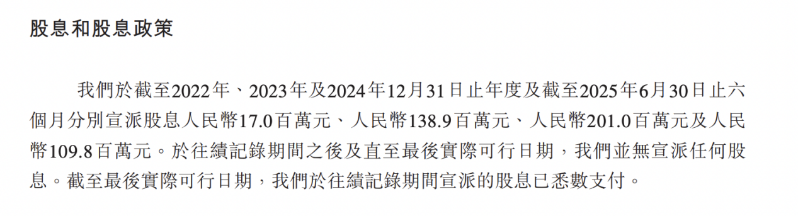 2022年-2024年及2025年上半年,圣桐特医分别宣派股息1700万元、1.39亿元、2.01亿元及1.1亿元,合计宣派股息约4.67亿元,超过了同期净利润的总和。