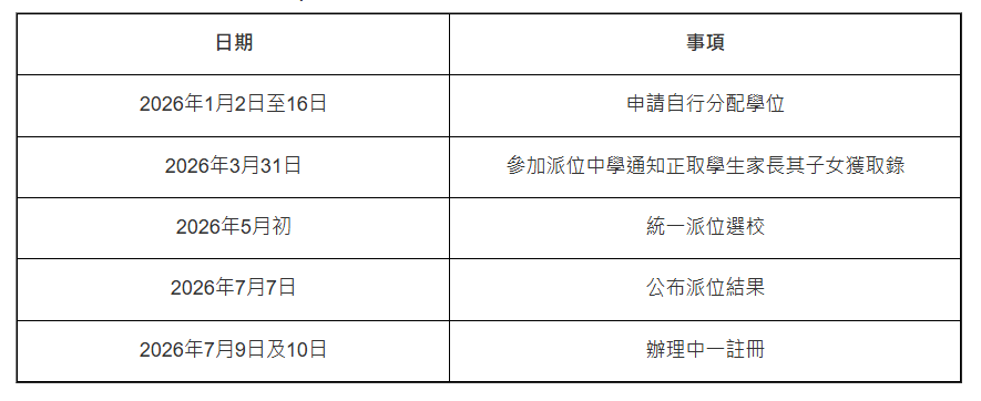 中一自行分配学位2026|2026学年的中一自行分配学位即将接受申请,有意让子女在明年9月入读官津中学,或参加派位直资中学的家长,可于2026年1月2至16日,在受校网限制之下,为子女申请2所中学有参加派位的中学,当中主要为官立和资助学校,也有少数直资中学,家长可按子女的学术水平、专长和性格等,为他们申请合适的中学。
