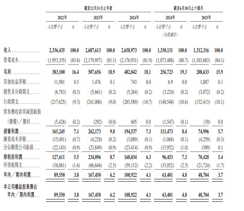 财务方面,于2022年度、2023年度、2024年度、2024年及2025年截至6月30日止六个月,明基医院实现收入分别约为23.36亿元、26.88亿元、26.59亿元、13.30亿元、13.12亿元人民币;同期,年/期内利润为8955万元、约1.67亿元、约1.09亿元、6340.1万元、4870.4万元人民币。