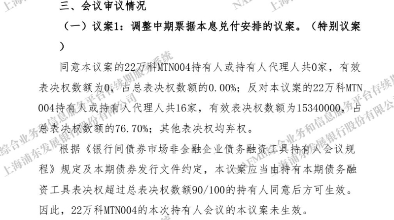 因此,22万科MTN004的本次持有人会议的三个议案均未生效。