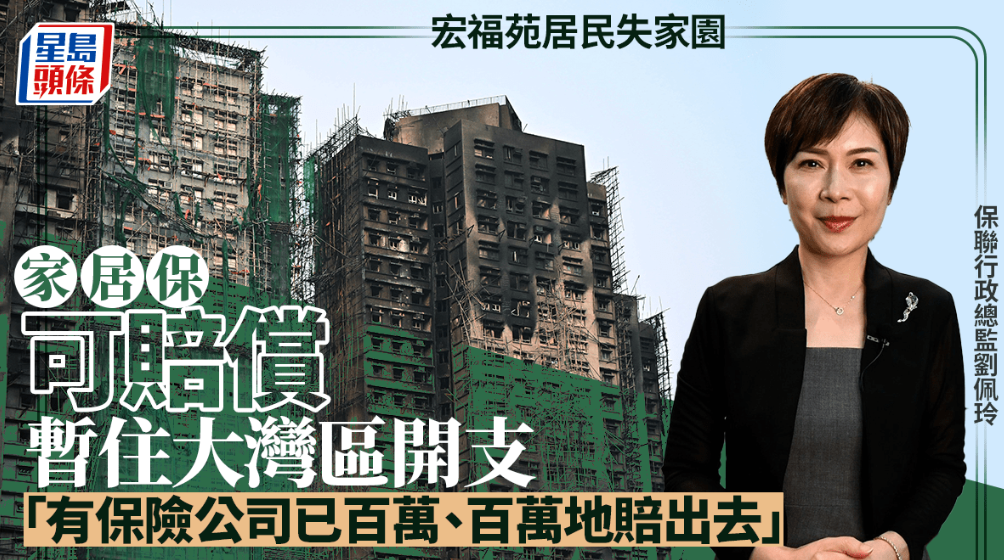 大埔宏福苑上月发生的五级大火,死亡人数达160人,数百个家庭失去家园,家中财物化为乌有。香港保险业联会行政总监刘佩玲接受《星岛》访问时表示,不少保险公司今次按家居保险的投保总额作赔偿;亦有保险公司保障居民到大湾区暂住的开支。 另外,宏福苑大火提醒市民家居保险的重要性,除了市民最常留意的家居财物保障,原来部分保险公司的家居保险亦会提供意外受伤或身故保障,连宠物也受保。