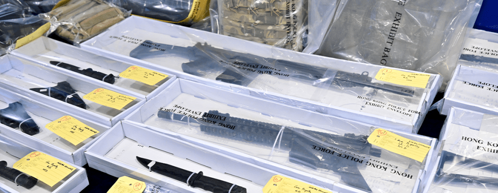 警方调查显示,有团伙于九龙一工厂大厦单位内进行非法操练,内容包括持枪械操练、刀术及格斗术等。人员在该涉嫌被用作非法操练的单位,并检获怀疑用作非法操练的攻击性武器。