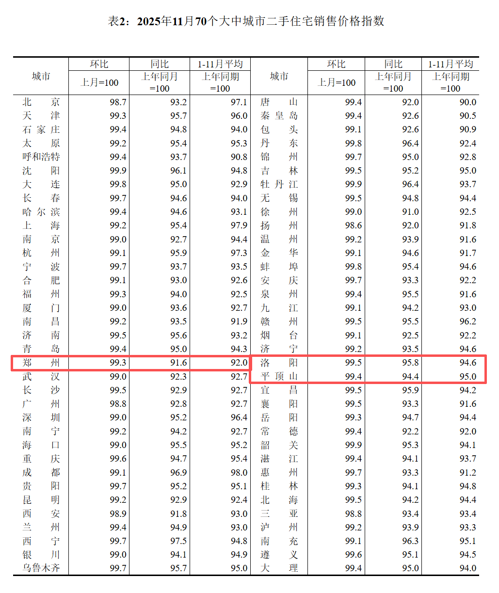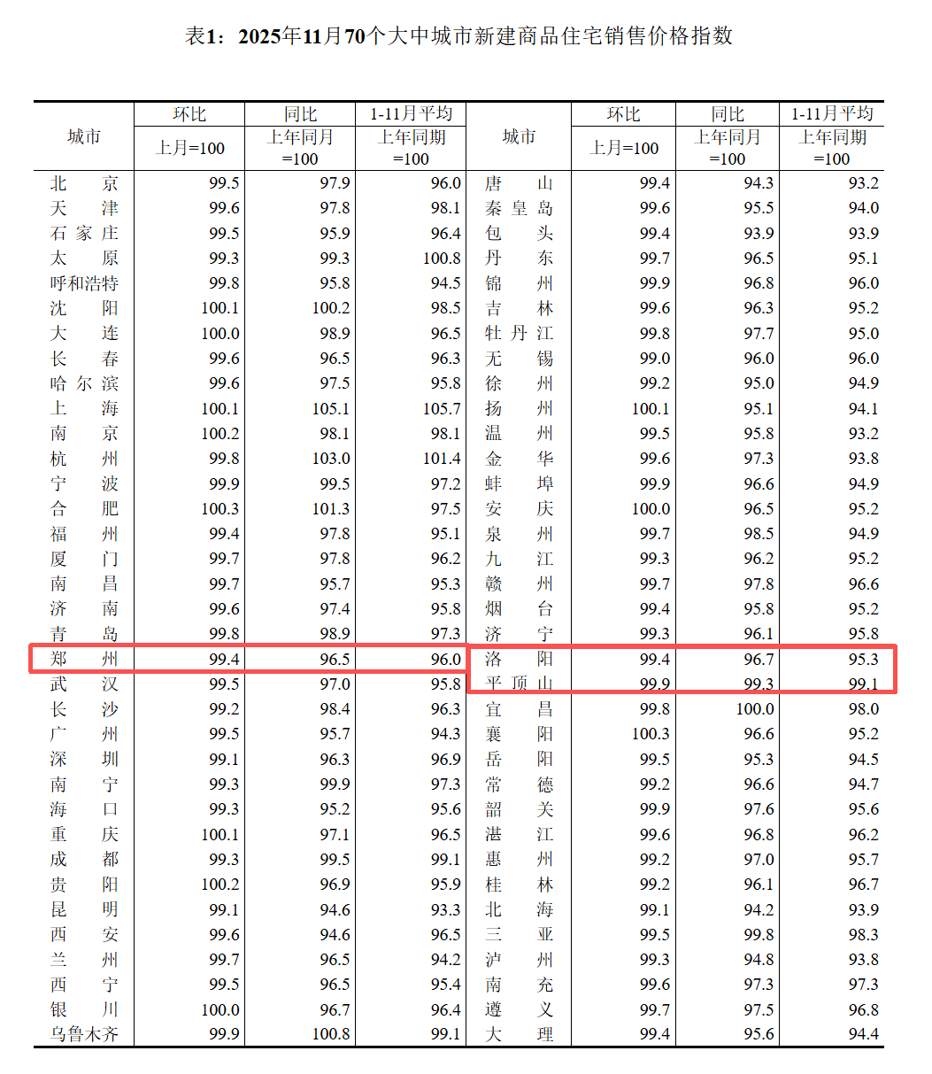国家统计局今日发布2025年11月份70个大中城市商品住宅销售价格变动情况。发布数据显示,2025年11月份,70个大中城市商品住宅销售价格环比总体下降、同比降幅扩大。