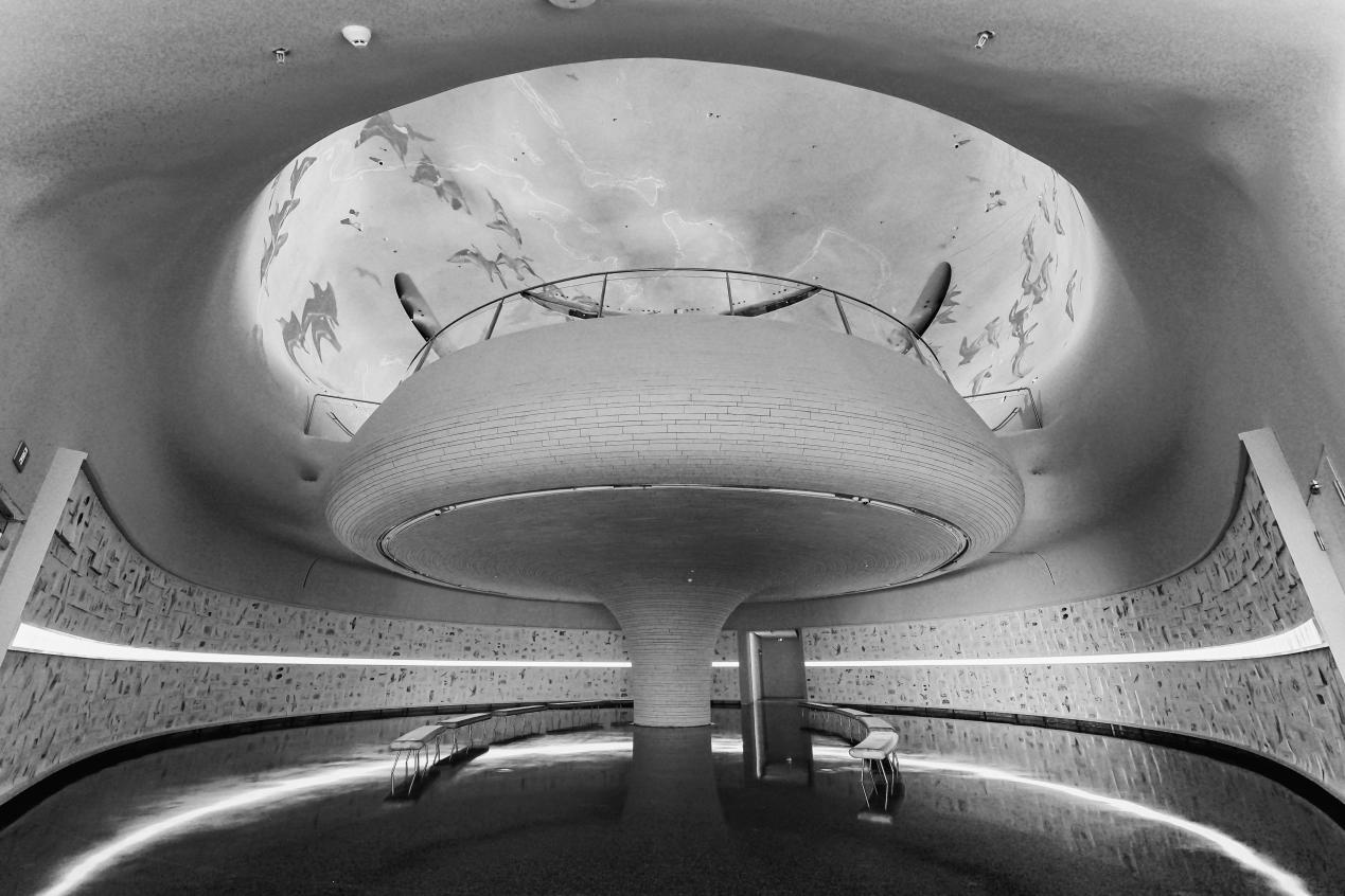 同时,一幅8分钟的影像长卷似动态岩画镌刻在室内穹顶之上。该影像以“迁徙”为核心展开深邃沉思——关乎飞鸟、人类、山峦与磁场的动态图景,英国作曲团队Poly phonia创作的音律,为这份沉思奠定成悠远的吟唱。