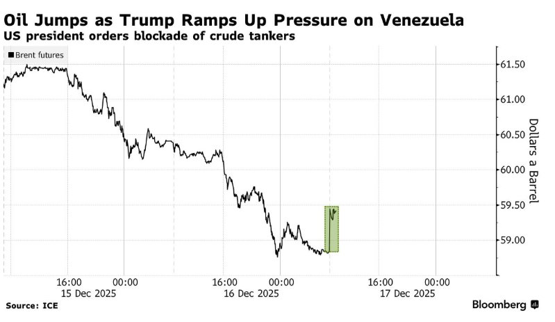 在美国总统特朗普通过下令封锁南美洲国家近海地区的受制裁油轮,并且加大对委内瑞拉军事与经济施压之后,国际原油定价基准——布伦特原油期货价格从2021年以来的最低价格水平迅速反弹,但是反弹幅度相对有限,仅仅徘徊在1%涨幅附近。